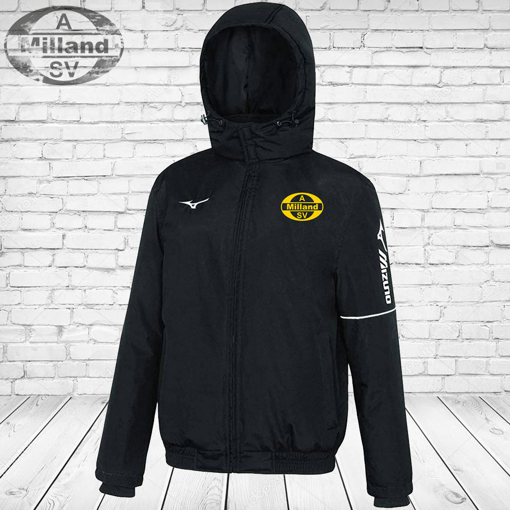 - Giaccone imbottito con cappuccio e due tasche laterali con la zip.